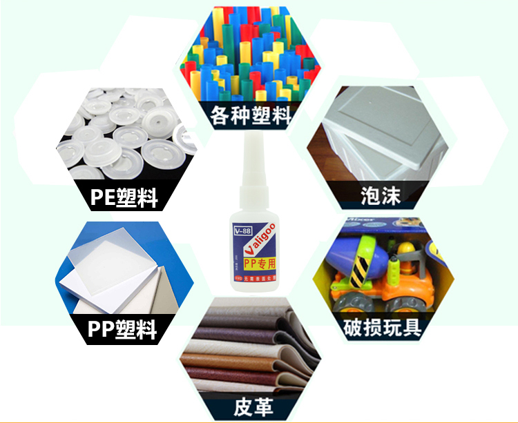 PP塑料是一種熱塑性塑料,耐沖擊性較高,能抗多種有機溶劑和酸堿腐蝕,機械性質(zhì)強韌,是一種較常見的高分子材料,如:PP硬塑料、PP塑料玩具等。 V-80PP塑料專用膠水,軟性佳,是種針對難粘塑料的膠水,專用于聚丙烯PE聚乙烯的強力透明快干膠。固化快,固化時間大概在30-40S,環(huán)保無毒,無需表面處理,強力快干,低白化,適用于PE塑料、PVC塑料、PP塑料、橡膠等.。